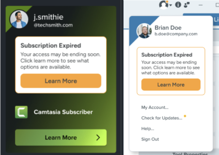 If any of the three scenarios above are what happened to you, please go to https://www.techsmith.com/products.html and purchase a new license. After purchasing, please contact Customer Care to update your subscription so you no longer see the subscription expired messaging: https://support.techsmith.com/hc/en-us/requests/new