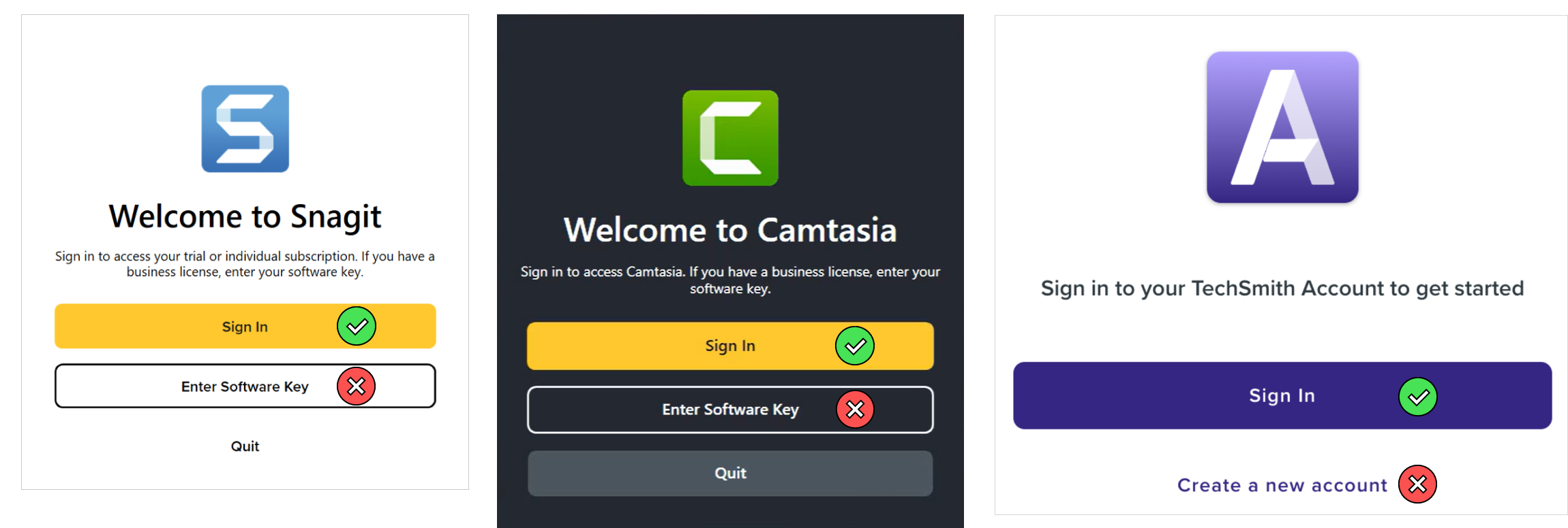 - Repeat these steps for each product (Snagit, Camtasia, and Audiate)